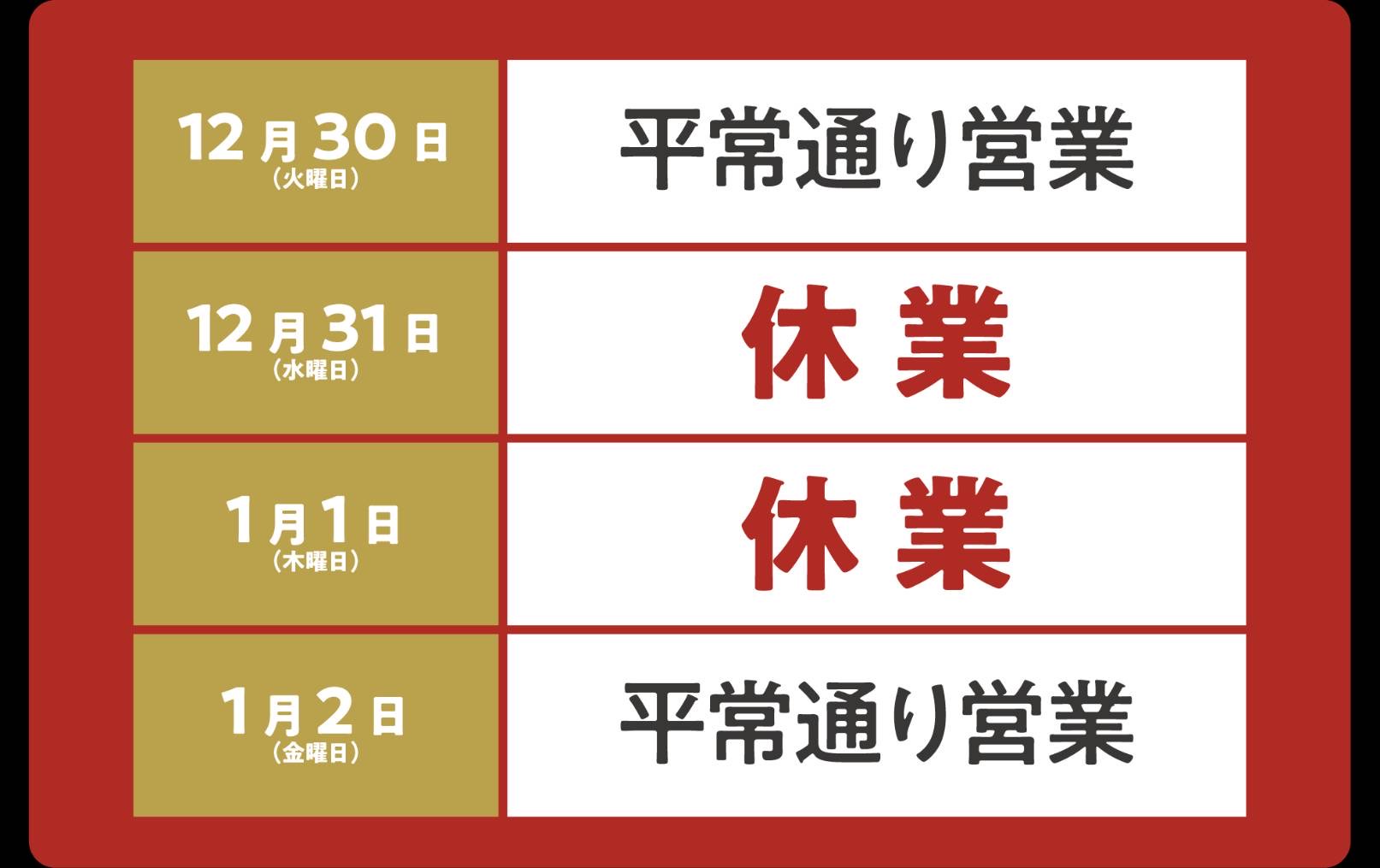 🐍2025〜2026🐴 年末年始🗓️営業時間のお知らせ‼️ 12/30(火)平常通り営業 12/31(水)休業 1/1 (木)休業 1/2 (金)平常通り営業 [続きを見る]
